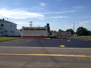 Commercial parking lot sealcoat and striping in Belleville, MI.